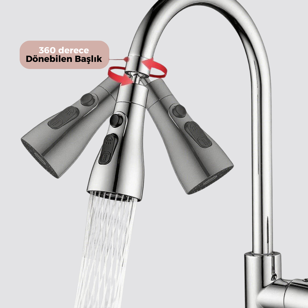 Lavabonun her köşesine rahatça ulaşın. 360° dönebilen tasarımı sayesinde bulaşık yıkamak, meyve–sebze durulamak ve tezgâh temizlemek artık çok daha kolay.