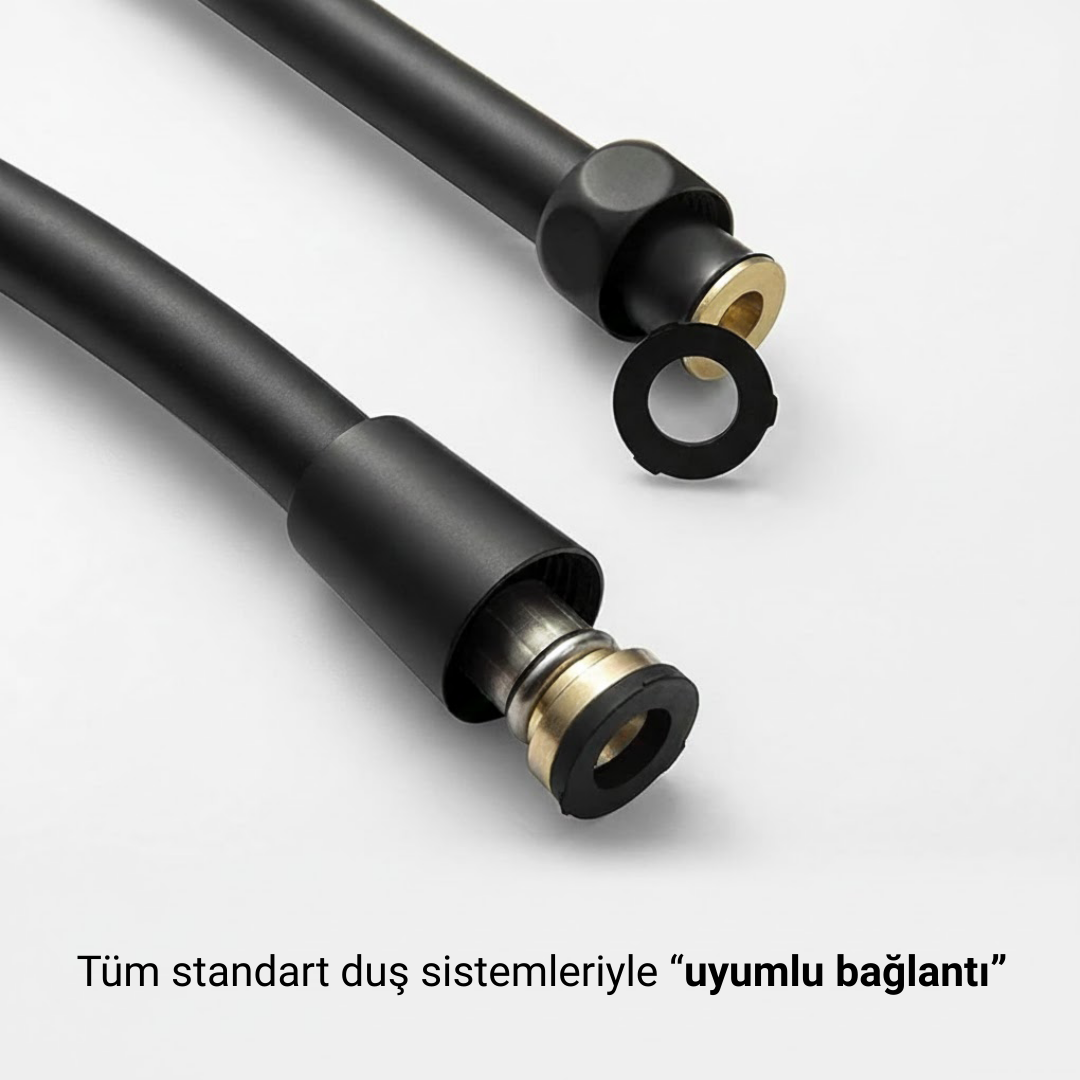 Evet. Hortum, standart G1/2 bağlantı ölçüsüne sahiptir. Türkiye’de kullanılan tüm duş başlıkları ve batarya çıkışlarıyla tam uyumludur. Ek aparat gerektirmez.