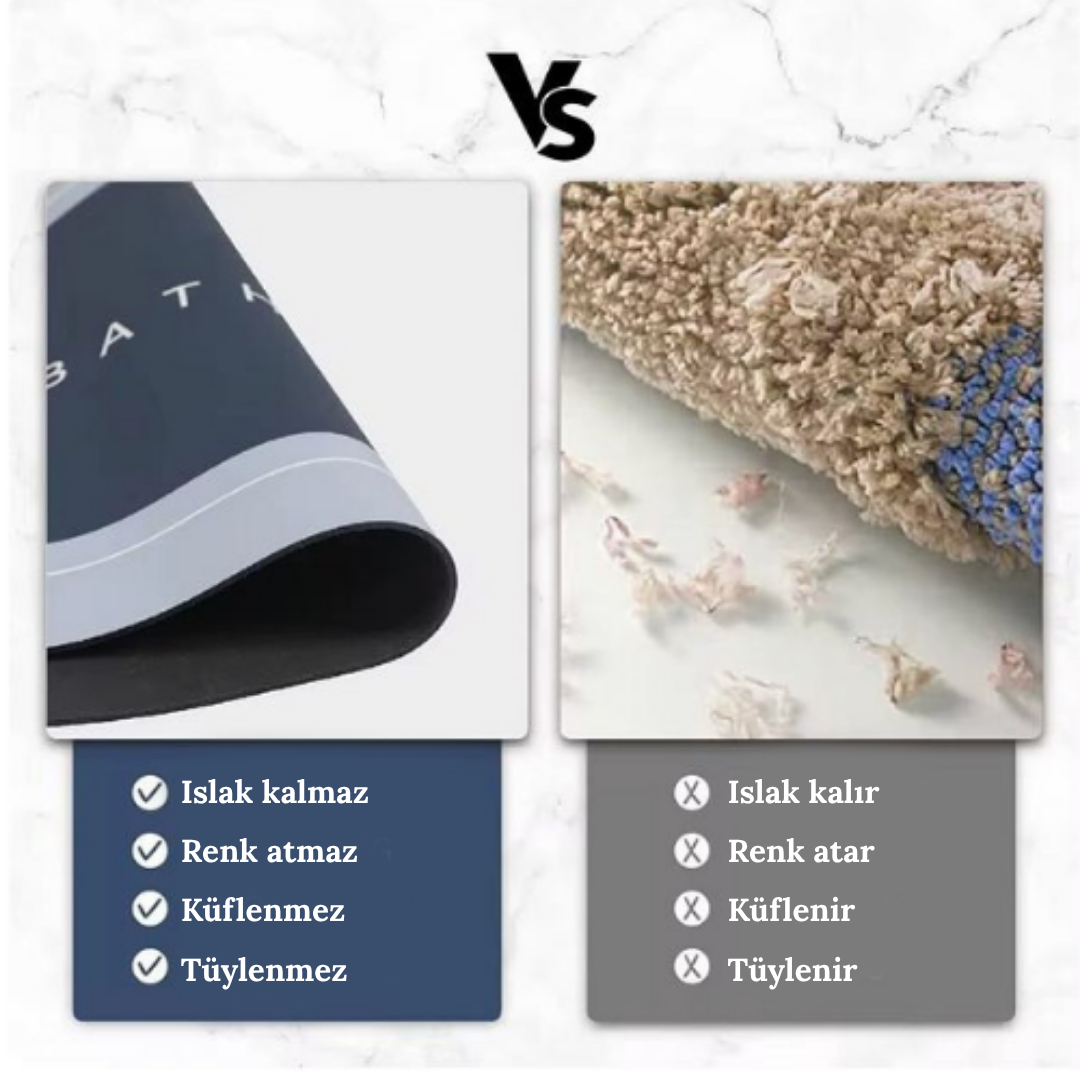 Banyo zeminini temiz, kuru ve güvenli tutmak için küveduş kapısının veya tin, lavabonun önünde rahatlıkla kullanılabilir.